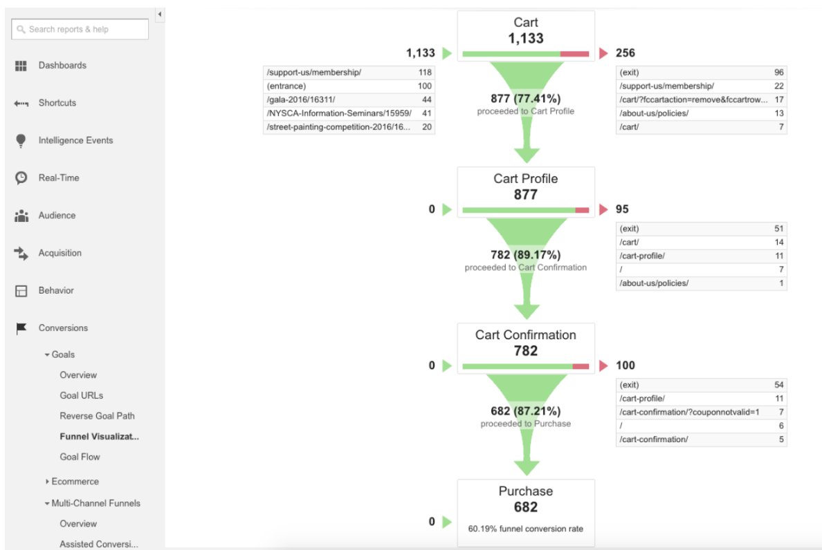 Buyer funnels are one of the most popular uses of Google Analytics, as depicted above. Insights like these are directly applicable to your customer journey map.